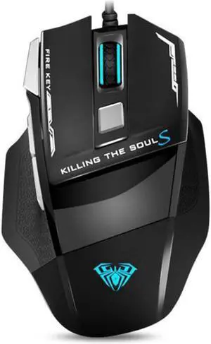 AULA Killing The Soul II Gaming Mouse Wired 2400DPI Breathing Light Ergonomic Game Mice USB Computer Mice Gamer Desktop Laptop PC Gaming Mouse, 7 Buttons for Windows 7/8/10/XP Vista Linux, Black