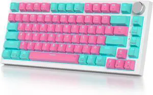 iTastatur 82 Keys Wireless Gaming Keyboard 75 Percent,Triple Mode Bluetooth/2.4Ghz/USB Pre-lubed Hot Swappable Mechanical Pink Keyboard, w/Knob&Sound-Absorbing Pads,4000mAh Battery for Mac/Win(Miami)