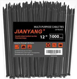 ALBO Zip Ties Black 12 Inch 1000 Pack Long Plastic Cable Ties Thick 0.19 Inch Tie Wraps Heavy Duty 50 lb UV Resistant Nylon Wire Ties for Indoor and Outdoor