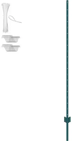 5 Feet Fence Post, 10 Pack U-Channel Heavy Duty Metal Fence Posts, Sturdy Steel Fence Stakes for Garden Yard, Lawn, Farms and Outdoor Wire Fencing, Green