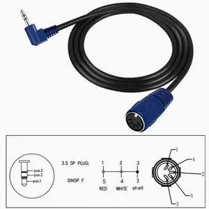 MIDI to TRS 3.5mm rotary DIN 5P female audio plug to MIDI audio adapter elbow Blue 1.5m
