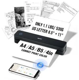 Phomemo Portable Printer Wireless for Travel, Inkless Thermal Printer Supports US Letter Thermal Paper, Compatible with Phone & Laptop, for Business, Office, School