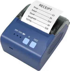 58mm Portable Thermal Receipt Printer USB & Connection 2 inches Wirel Printer High with 1 Roll Paper Inside Compatible with iOS Android Windows for Restaurant Sales Retail Shop Blue