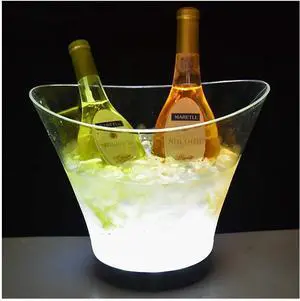 Led Colour Changing Ice Bucket,Large Capacity Cooler Bucket Acrylic Round Bar Beer Drinks Ice Buckets Waterproof Champagne Retro Wine Drink Beer Beverage Ice Bucket Battery Powered