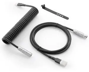 GunMjo Pro Custom Coiled USB C Cable for Gaming Keyboard, Double-Sleeved Mechanical Keyboard Cable with Slim Type Detachable Metal Aviator, 1.5M USB-C to USB-A, Carbon Color