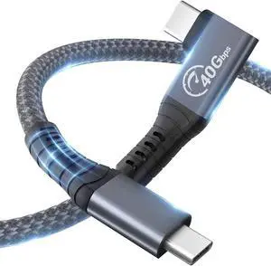 USB 4 Cable[USB-IF Certification] Compatible Thunderbolt 4/3 Cable 90 Degree 6.6Ft with 40Gbps Data Transfer, 8K@60Hz/Dual 4K Display, PD100W Charging for MacBook Pro, iPad Pro, ipad Mini, Laptop SSD
