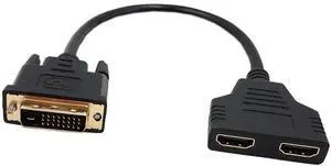 DVI-D to HDMI Cable, Gold-Plated DVI-D Male 24 1 Pin to Dual Hdmi Female 1080p Hdmi Video Converter Adapter Splitter Cable