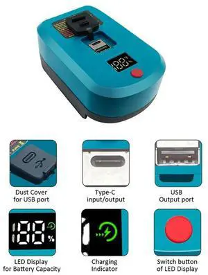 65W Adapter Charger For 18V Li- With Type-C Port And USB Port Reverse USB Charge Adapter Converter Easy To Use-