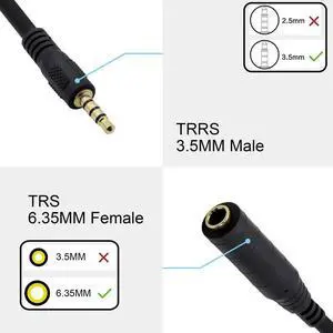 1/4" to 1/8" TRS/TRRS Adapter 6.35mm Male to 3.5mm Female Stereo Audio Cable Y-Splitter Adapter for Amplifiers, Guitars, Pianos, Home Theater Equipment Etc.