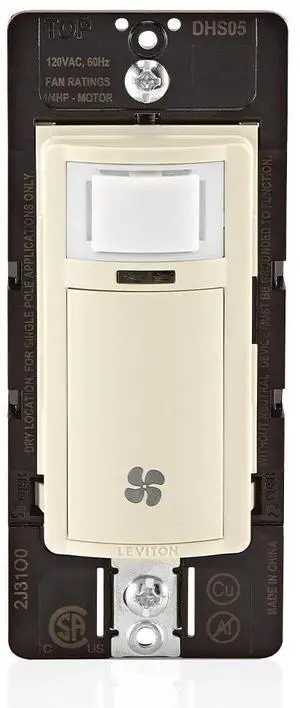 Leviton Decora in-Wall Humidity Sensor and Fan Control Switch, 1/4 HP, Residential Grade, Single Pole, Light Almond, DHS05-1LT