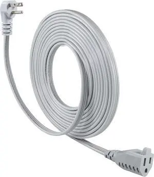 15 Ft Flat Plug Extension Cord, 16 AWG 3 Prong Grounded White Low Profile Extension Cable for IndoorUL Listed
