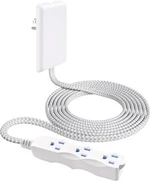 PLUGTUL Flat Plug Extension Cord 3 Outlet, 8 FT Braided White Extension Cord, 16 Gauge 3 Prong Grounded Wire, Home and Office, ETL Listed