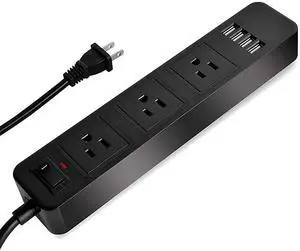 Toytexx Inc 3 - Outlet Power Strip with 4 USB Ports, 6.6ft Extension Cord, Surge Protector, 2-Prong to 3-Prong Adapter (Black)