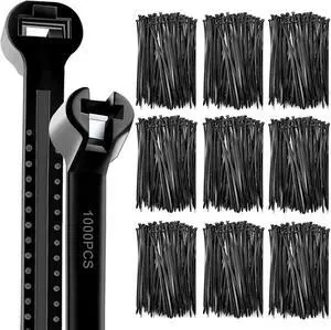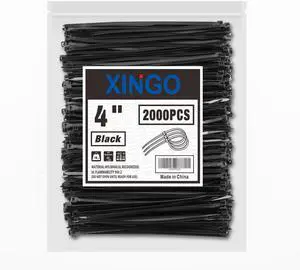 XINGO Black Zip Ties 4 Inch 2000Pack,Small Zip Ties with 18lbs Tensile Strength, Self-Locking Nylon PA66 Cable Ties for Electronics Organizer, Home Office Garage Multiple Use