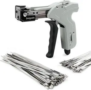 Delgada Stainless Steel Cable Tie Gun Kit with 100PCS Self-Locking Metal Zip Ties Outdoor Heavy Duty Fastening Zip Tie Tightening Tool for Chain Link Fence Pipes