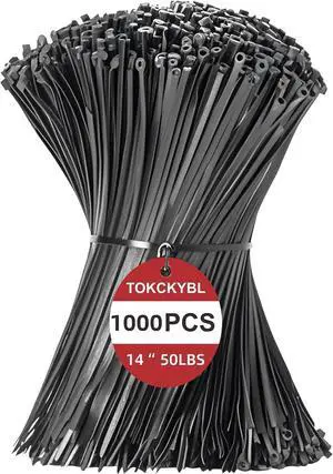 14 Inch Zip Ties (1000 Pack) Heavy Duty 50lbs Tensile Strength, UV Resistant Black Cable Ties for Indoor & Outdoor Use, Durable Nylon Wire Ties for Organizing Cables, Garden, Garage