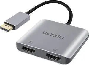 UAYXILI 8K30Hz DisplayPort to Dual HDMI MST Adapter,Display Port to HDMI 1 in 2 Out for Dual 4K@60HzMonitor, Extended Display, DP Source Adapter with PC,Graphics Card,Laptop Have DP Output