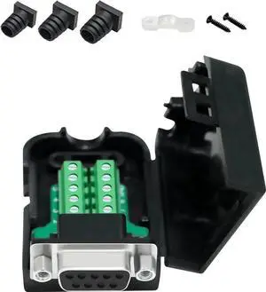 DB9 Breakout Connector DB-9 Female RS232 Serial Adapter Solderless Module Board with Terminal Block, Case, Nuts and Tail Pipes (DB9 Female + Nuts)