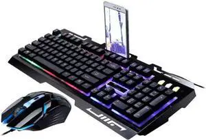Gaming Keyboard and Mouse Combo USB Wired LED Rainbow Backlight 2 Color Keyboard 6 Button 2 Side-Button mice Mechanical Feel for Office Home Laptop Desktop Computer(Black and Grey)