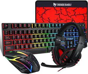 T-Wolf Gaming Combo TF800 Keyboard/Mouse/Headphone/Mouse Pad Wired LED RGB Backlight Bundle for PC Gamers Users - 4 in 1, Black