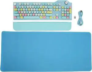 Keyboard, Blue Switch Aluminium Alloy Gaming Keyboard Wired or Round Keycaps Knob Control with Wrist Pad for Phone (Blue)