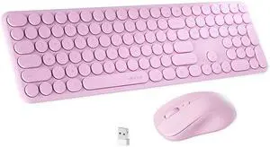 FCPLU x UBOTIE Wireless Keyboard and Mouse Combo with 110 Round Keycaps, Power Switch, and Scissor-Switch Typing Feel Ideal for Office Use(Pink)