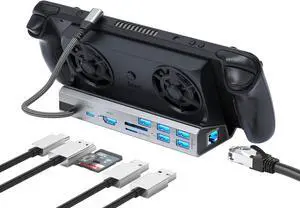 9-in-1 Steam Deck Docking Station for Steam Deck/Rog Ally/Switch/Legion Go Dual Cooling Fans 4K@60Hz,6 USB Ports,1000Mbps,Type C 100W PD 40Gbps Adapter