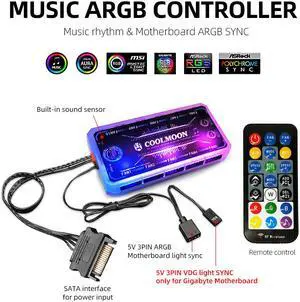 Weastlinks 14cm ARGB Fan 140mm Case Fan with Music Controller Support AURA SYNC Computer Cooler Cooling RGB Case Fans 14cm