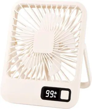 USB Desk Fan Digital Display USB Rechargeable Desk Fan Silent Table Fans 5 Speed Adjustable Portable Home Office Car(White)