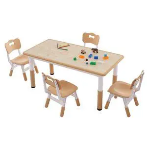 VEVOR Kids Table and 4 Chairs Set, Height Adjustable Toddler Table and Chair Set, Graffiti Desktop, Children Multi-Activity Table for Art, Craft, Reading, Learning
