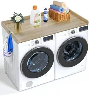 Washer Dryer Countertop, 54" x 27" Wooden Washer and Dryer Countertop, Water-Resistant Laundry Machine Topper Cover with Anti-Slip Pads, for Laundry Room Organization and Storage, Oak