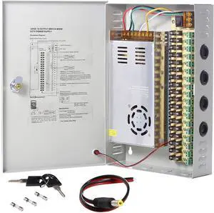 12V DC 18-Channel Distributed Power Supply Box 240W 20A Individual Fuse for CCTV Security Camera LED Strip Light and More