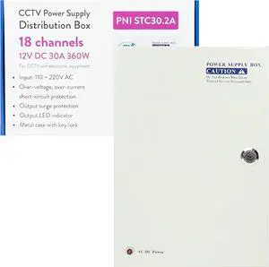 CCTV Power Supply PNI STC30.2A in Metal Box 12V 30A 360W, 18 outputs