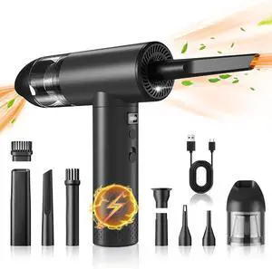 Hosslearlear Air Blaster and Vacuum 2-in-1, Genuine 91000RPM Compressed Air Duster Electric Jet Blower Car Dryer Keyboard Cleaner Reusable Canned Air Replacement, 3 Speeds, 7500mAh, LED Light, Black