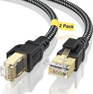 Cat 8 Ethernet Cable 6FT 2Pack, BUSOHE 40Gbps 2000Mhz High Speed Braided Network Internet Cable with Gold Plated RJ45 Connector, Heavy Duty Patch Cord LAN Cable S/FTP Indoor for Router/Gaming/PC