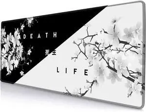 JVFYI Gaming Mouse Pad, Large Mouse Pads for Desk, Non-Slip Rubber Base Mousepad, Keyboard Mouse Mat Desk Pad with Stitched Edges, 31.5x11.8 inch Sakura Death Life Floral
