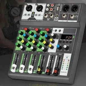 A4 4Channels Audio Mixer Sound Mixing Console with Bluetooth USB Record 48V Phantom Power Monitor Paths Plus Effects Use