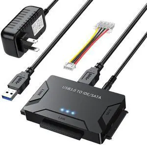 Hard Drive Reader USB 3.0 to SATA/IDE Adapter | Universal External Hard Drive Reader & Data Recovery Converter Kit for 2.5"/3.5" HDD/SSD | with 12V/2A Power Supply