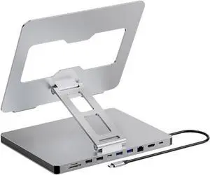 8-in-1 USB-C Laptop Stand with Docking Station Ergonomic Elevation with 4K HDMI, 2 USB 3.0, Pd 100W, Universal for Offices, Corporate Desks, Cafes