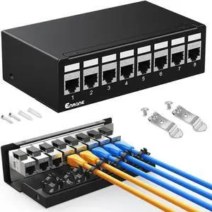 8Port Patch Panel CAT6A Keystone Patch Panel Shielded Network Patch Patch with Smart Cable Management for Home/Office Network (1U 8Port, CAT6A)