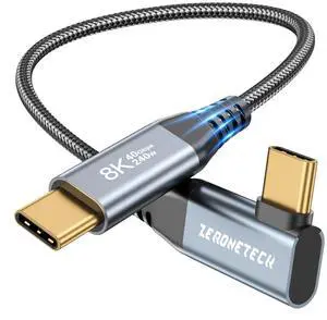 ZeroneTeck 8K/4K USB C to USB C Monitor Cable 0.5FT Right Angle, 40Gbps High Speed USB C Data Transfer Cable, USB C 3.2 Gen 2x2, 240W PD Fast Charging for MacBook Pro, iPad, Lenovo, HP, Dell