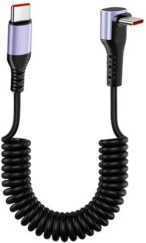 USB C to USB C Coiled Cable,Right Angle Type C Spring Fast Charging Cord Support Sync Data Transfer 90Degree Type-C Retractable Carplay Cable for IP15/16/Plus/Pro/Pro S20 S10 S9 S8 Plus