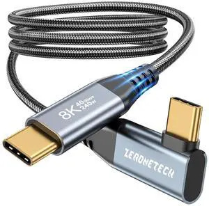 ZeroneTeck 5ft USB C to USB C Monitor Cable, 40Gbps High Speed Data Transfer, 240W PD Fast Charging, 8K@60Hz & Dual 4K@60Hz Video, Right Angle Design
