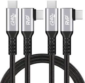 RVP+ USB C Cable 90 Degree 240W, Type C to Type C Cable, PD 3.1 Fast Charging Cable Up Down Angle - 3 Feet - Black - 2 Pack