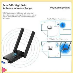 1300Mbps Long Range USB Adapter for PC Desktop Laptop ,USB Wireless Adapter Dual Band 2.4GHz 5GHz Internet Stick