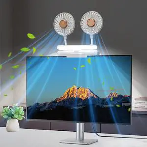 Monitor Fan with LED Lights, USB Desktop Fan with 2 Rotatable Heads, 3 Speeds Desk Fans Small Quiet with Sturdy Adjustable Clamp, Strong Wind Office Personal Cooling Fans for Laptop, Desktop.