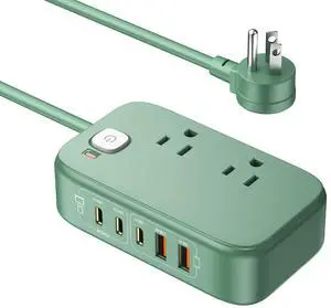 USB Charging Station for Multiple Devices PD 65W Power Strip Surge Protection 1200J, 5FT Flat Extension Cord Desktop USB Charging Hub for Travel,Home,Office,School,Dorm (Green)
