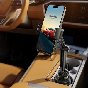 Cup Holder Phone Mount for Car - Lamicall Longer Neck Cup Phone Holder with Universal Adjustable Base, [Thick Case Friendly] Cupholder Cell Phone Car Mount for Truck Golf Cart for All 4"-7" Smartphone