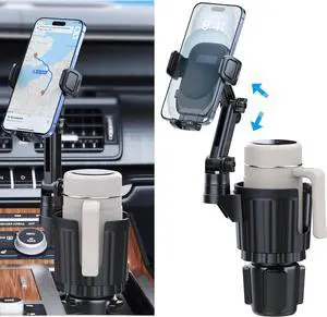 Cup Holder Phone Mount, 2 in 1 Universal Cup Holder Expander with Long Arm 360°Rotation Cup Phone Holder for Car Fits All 4-7 iPhone Galaxy Smartphones and Most Truck Bottles