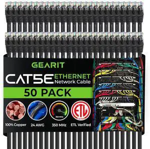 GEARit Cat 6 Ethernet Cable (50-Pack 3 Feet) Cat6 Network Patch, 10Gbps, RJ45, Snagless Cord, Gold-Plated Connectors, Internet for PC, TV, Tablet, Router, Printer, Servers, IT Data Center - Black